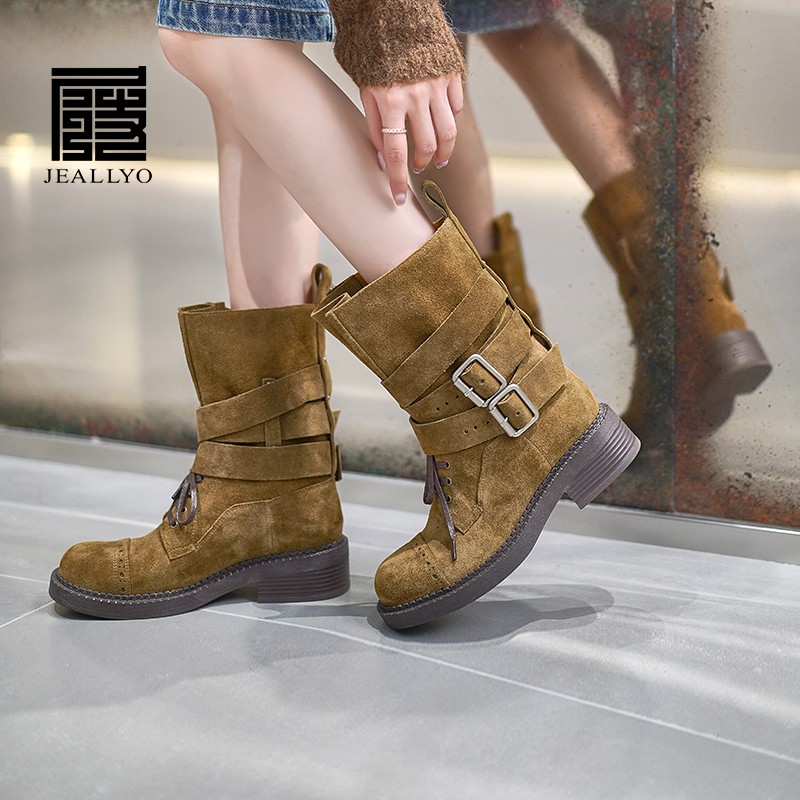 牛反绒粗跟马丁靴