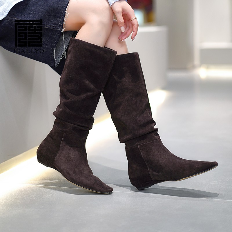 牛猄皮平跟长靴