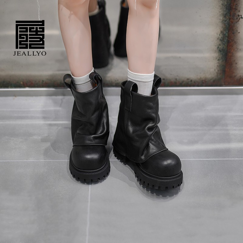牛猄皮厚底马丁靴