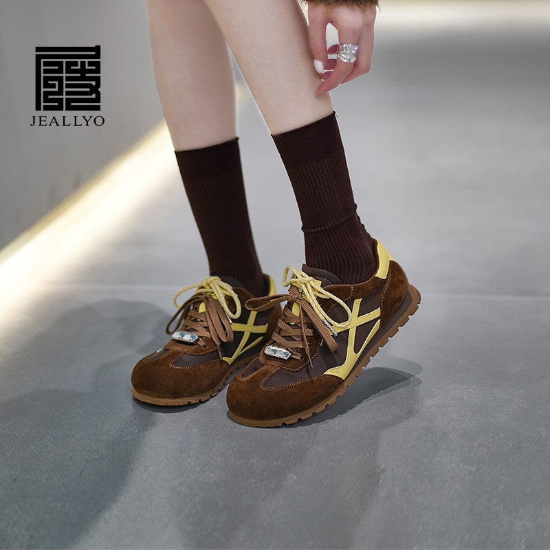 牛猄皮厚底德训鞋