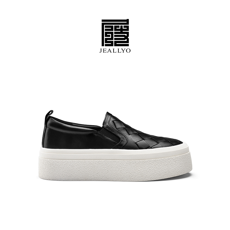 胎牛皮编织厚底板鞋