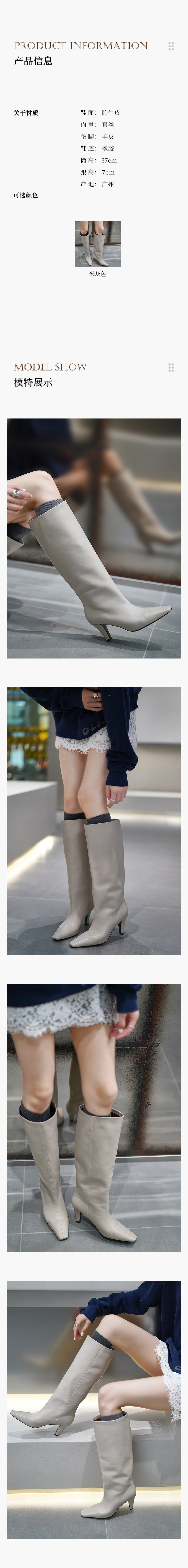 胎牛皮细跟时装靴